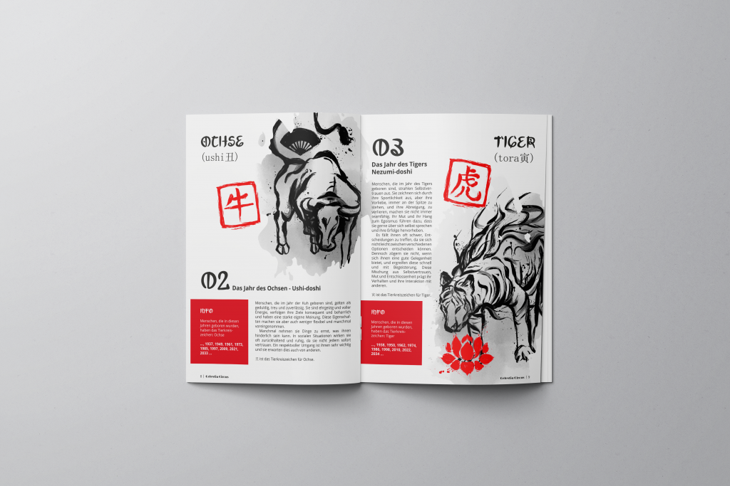 Das zweite Werbemittel ist eine Informationsbroschüre zu den einzelnen Tierkreiszeichen. Das Heft enthält Informationen über die Entstehung und die Legende der Tierkreiszeichen sowie 12